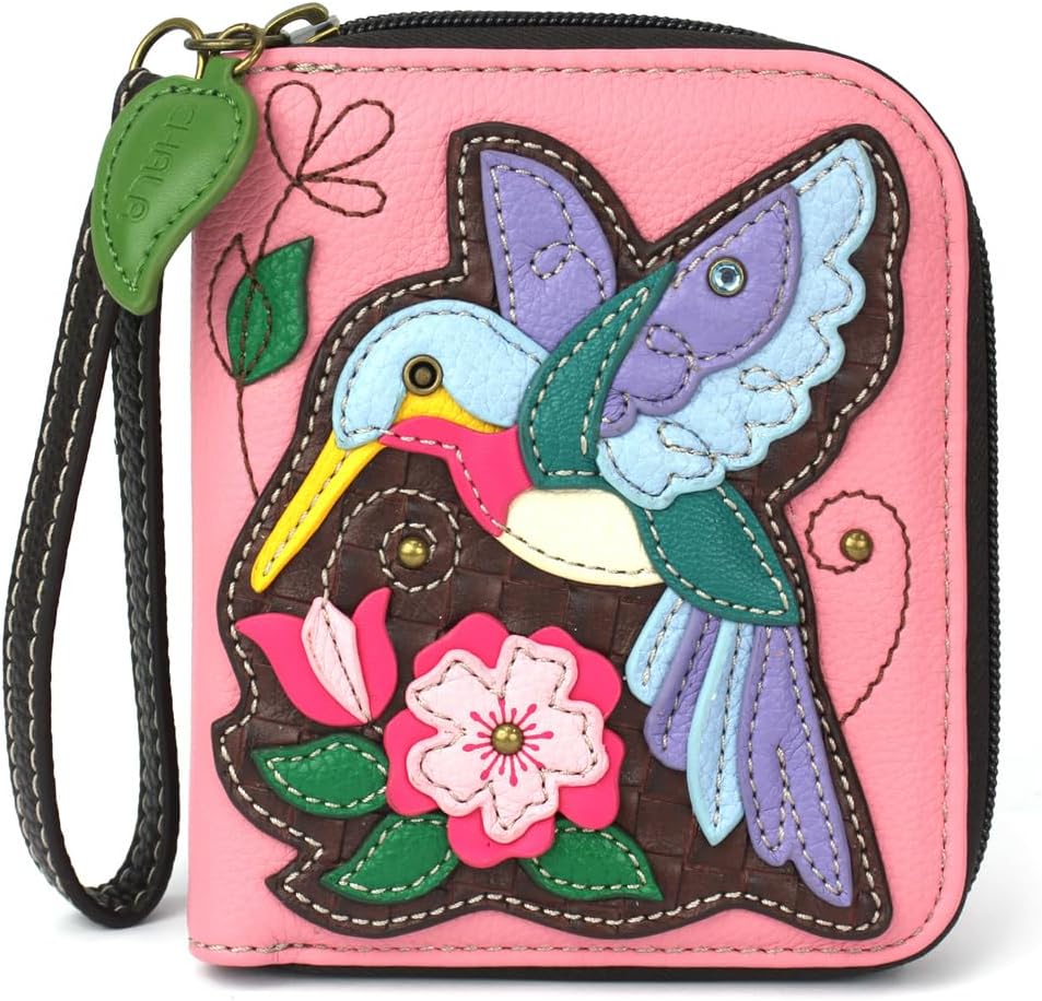 CHALA's Zip Around Wallet - embrace both fashion and function with CHALA's stylish Zip Around Wallet. Made with antique bronze-toned hardware and durable vegan leather, this handy wallet combines practical functionality and artistic flair through its meticulously crafted Chala Pal Character design featuring detailed stitching and embellishments, along with a thoughtfully designed interior. The compact yet functional design includes multiple card slots, an ID window, and ample space for bills and receipts, all secured with a reliable zipper closure. Safely store coins in the rear zipper pocket and enjoy hands free transport of all your necessities with the convenient wristlet strap. Ideal gift for everyday use or those who appreciate fun and practical accessories with a quirky fashion statement for any season. This convenient wallet combines artistic craftsmanship with everyday functionality for nature lovers and fashion enthusiasts alike. Materials: Faux Leather. Dimensions: 5 inch x 6 inch x 1 inch. Do not machine wash. 1 year manufacturer warranty.