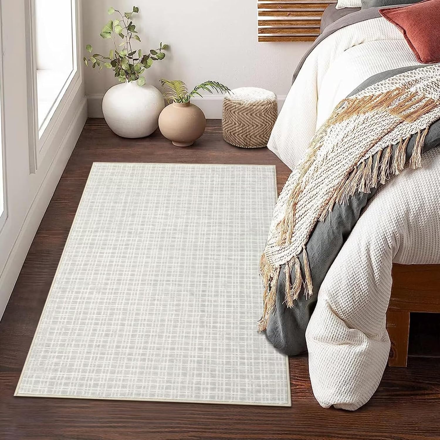 COZYLOOM Washable Rug 4x6 Modern Rug Contemporary Abstract Rug for Living Room Soft Low Pile Floor Cover Artistic Abstract Modern Interior Rug Non-Slip Foldable Thin Rug for Bedroom Nursery Grey