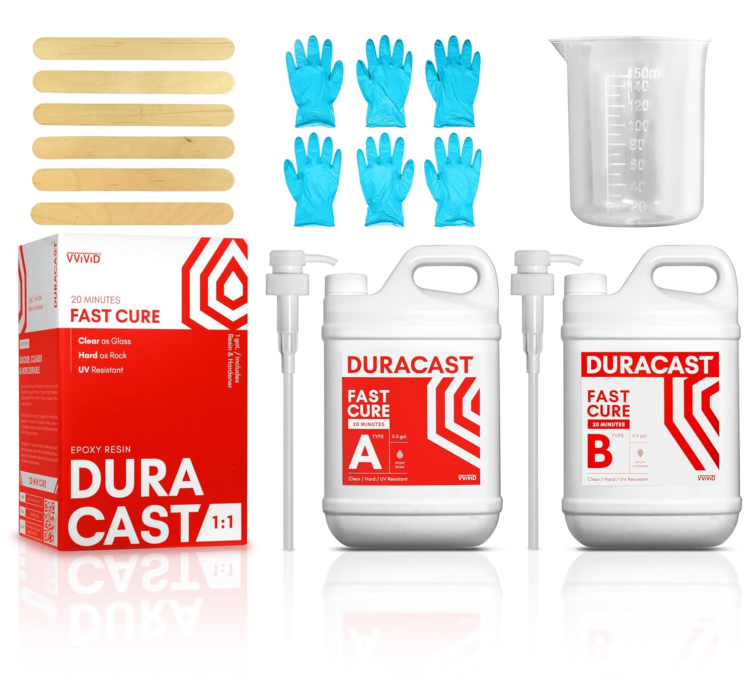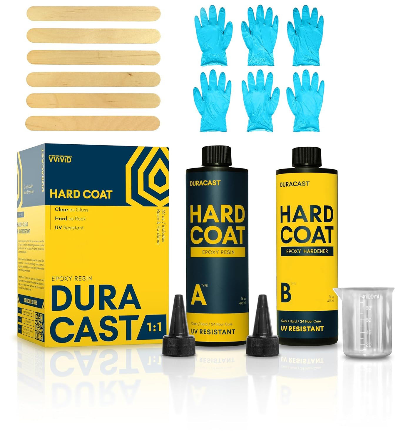VViViD DURACAST Epoxy Resin offers a 24-hour cure time for a highly durable, glass-like finish, perfect when precision and uncompromising quality are key. Its crystal-clear, anti-yellowing formula ensures lasting vibrancy for all your projects. With an easy 1:1 mixing ratio, it's simple for both beginners and pros to achieve perfect results. Unleash your creativity on small home decor and art, making coasters, trays, magnets, jewelry, and more—the possibilities are truly endless! Available in gallon and 32oz sizes to suit any project.