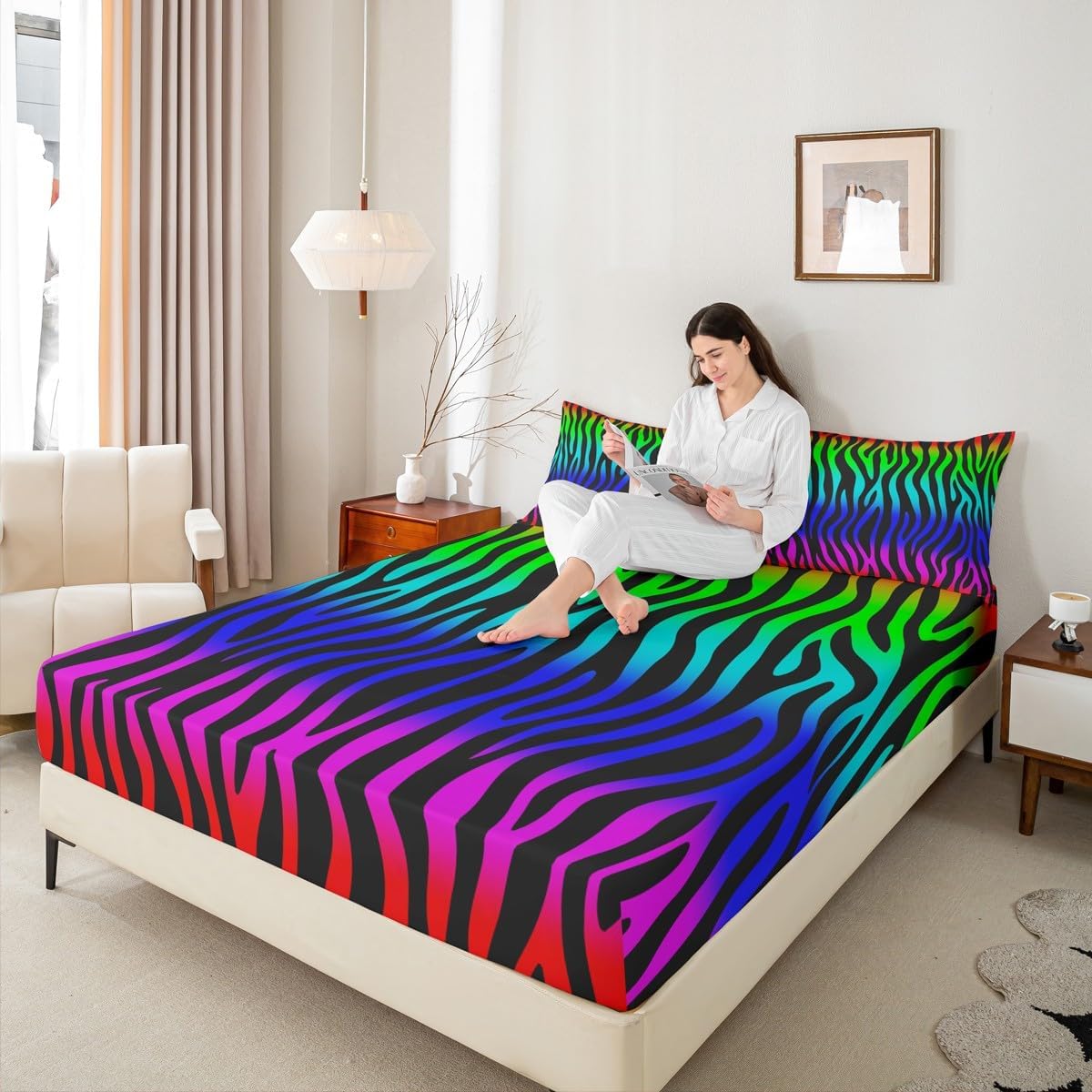 Elevate your bedroom decor with this exquisite fitted sheet set featuring an aesthetic design. Inspired by all the beautiful things in the world, this stylish artwork captures the essence of vibrant pattern on soft, cozy bedding. The vibrant colors and intricate details create a serene and calming atmosphere, suitable for a peaceful night's rest. Crafted from ultra soft materials, this bed set is not only visually stunning but also incredibly comfortable and stylish. Whether you're seeking a touch of modern charm or a vintage oasis, this bedroom set will transform your bedroom into a tranquil retreat. Elevate your sleeping experience with this artistic masterpiece.